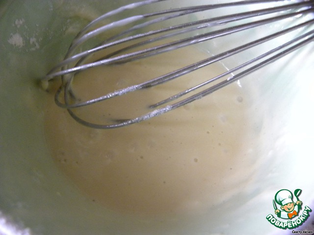 Пока готовятся тарталетки делаем кляр: взбиваем яйца, сметану, муку, по щепотке соды, соль и сахар. Вишню обмакнуть в кляр, обжарить на масле до лёгкой корочки.