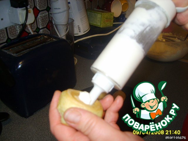 С помощью шприца выдавить на противень небольшие плюшки, оставляя промежутки между ними, выпечь при 175 градусах до золотистого цвета (духовку не открывать, тесто осядет)