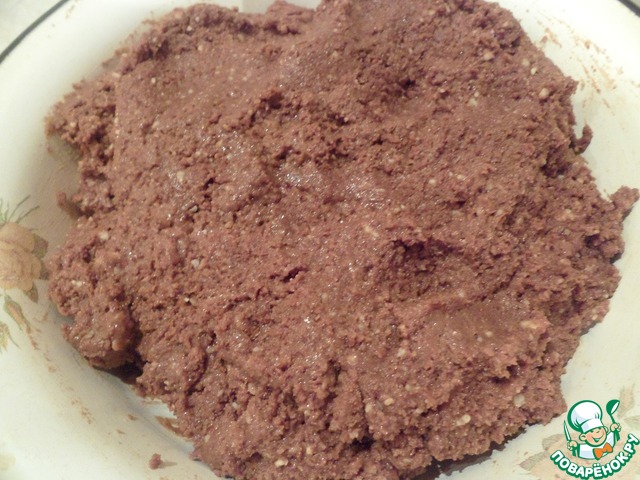 Добавить в заправку измельченные в крошку печенье с орехами и тщательно вымесить.