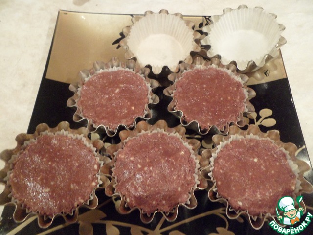 В формочки для кексов вкладываем бумажные вкладыши и заполняем, утрамбовывая, нашей шоколадной массой. Убираем в холодильник.