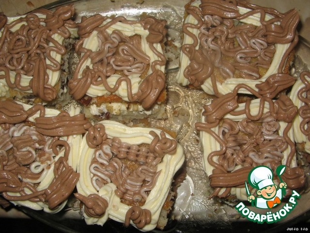 | Нежные пирожные со сливочно-шоколадным кремом, с изюмом и орешками. |
