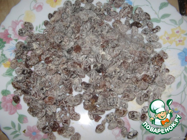 Изюм предварительно нужно залить кипятком и дать ему постоять минут 5.
