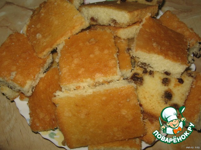 Даём остыть и нарезаем полученный корж на квадратики. Форма может быть совершенно любая. Можно сделать и в форме торта. Этого количества теста хватит на два коржа, которые лучше выпечь по очереди.
