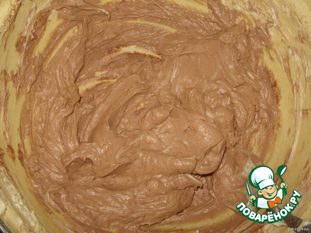 Чуть меньше половины крема оставляем белой, а в другую половину добавляем какао.