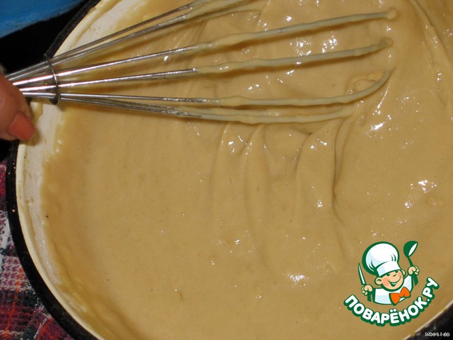 Б. сахарную пудру растереть с желтками, влить стакан кофе, молоко, добавить муку и все тщательно перемешать. Поставить на слабый огонь, мешать пока не закипит.
