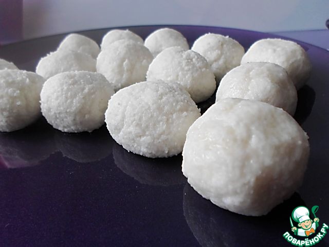 Лепим шарики размером с грецкий орех или чуть меньше, чтобы шарик данго мог целиком поместиться во рту. Должно получиться 15 круглых лепешечек - как раз хватит на 5 шампуров.