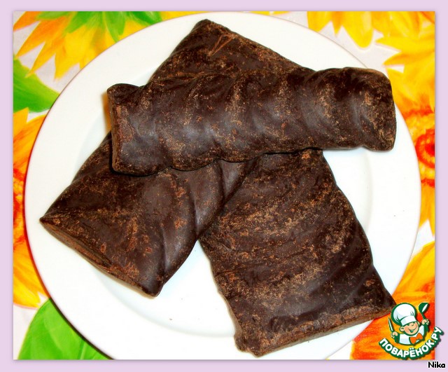 Каждую вафельку обмазать жидким шоколадом и соединить.