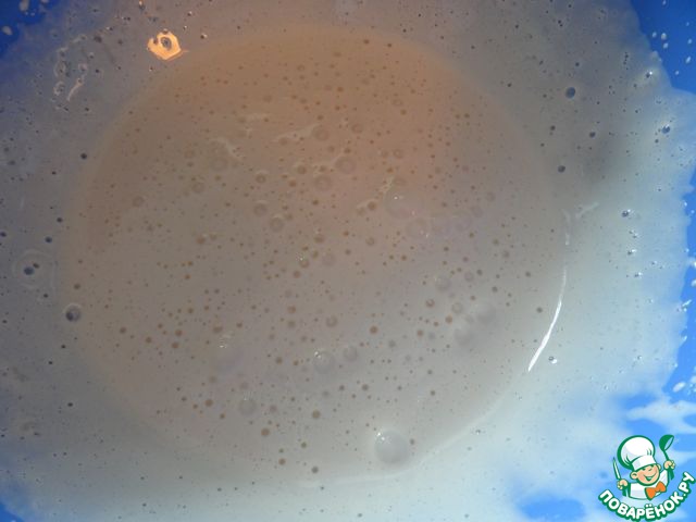 Взбить яичные желтки с оставшимся сахаром (60гр) до бледно-желтой массы. Добавить ваниль и молоко, хорошо взбить.