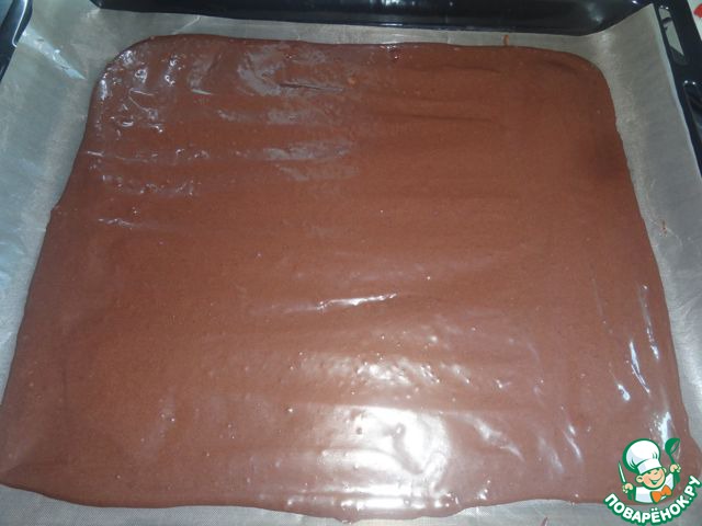 Вылейте смесь на подготовленный противень и разровнять. Выпекать от 15 до 18 минут.