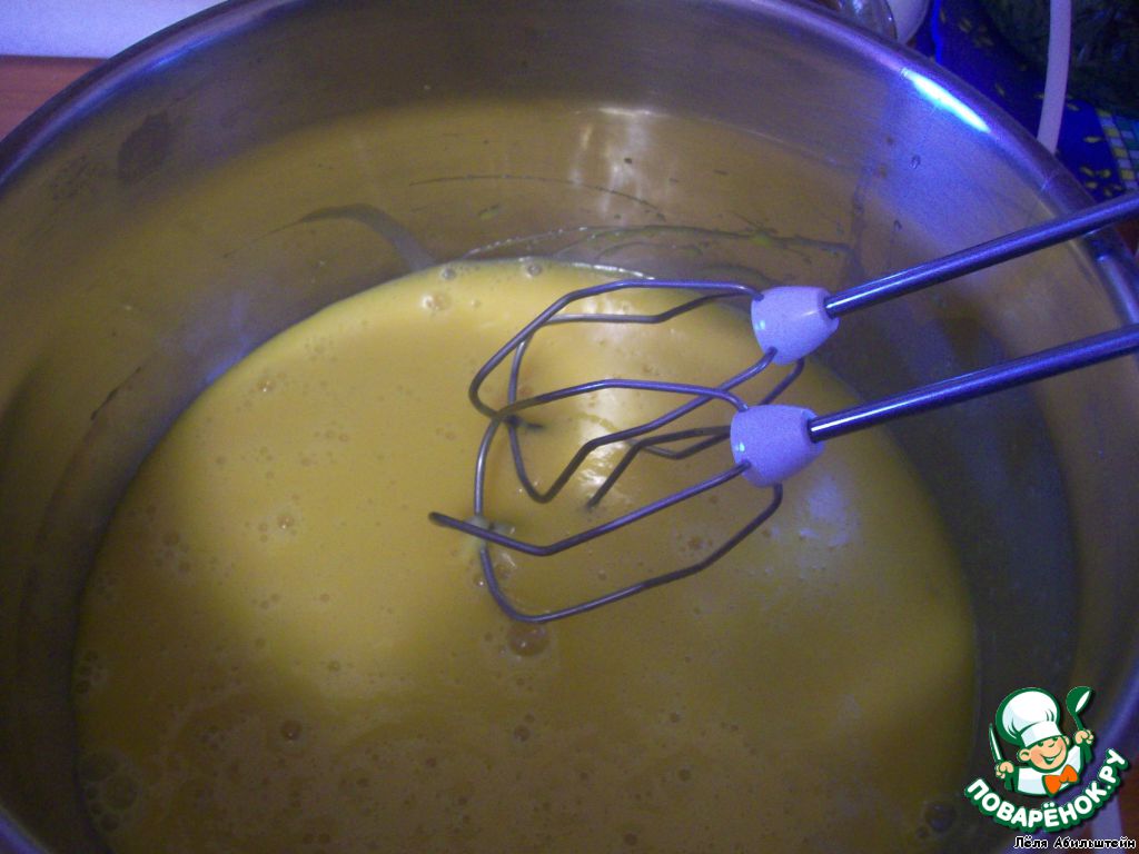 Выключаем огонь, хорошенько перемешиваем. Ставим остужаться в холодную воду. Остужаем до прохладного состояния.