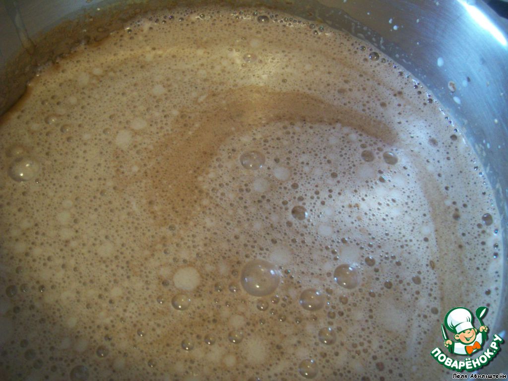 Добавляем молоко, ставим на огонь, нагреваем, все время мешаем.
