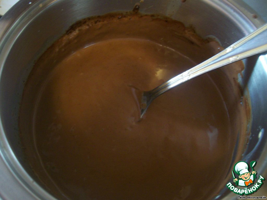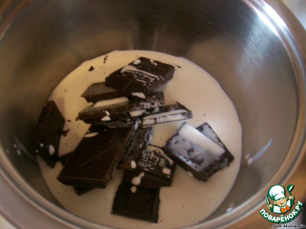 Теперь готовим глазурь. Растапливаем шоколад со сливками. На медленном огне. До кипения не доводить.
