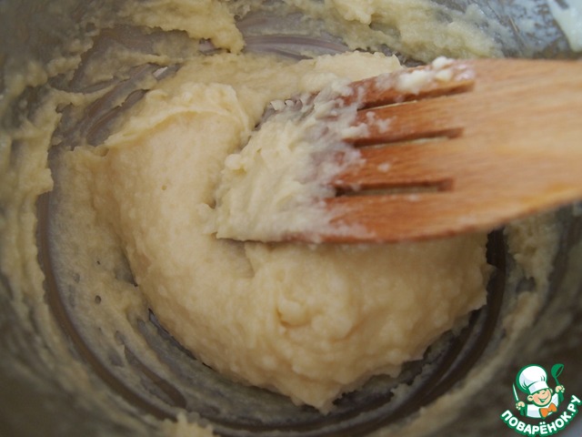 Переложить тесто в другую емкость, чтобы быстрее остывало. В слегка остывшее тесто вбить яйца по одному, перемешивая лопаткой.