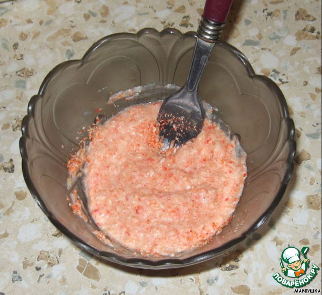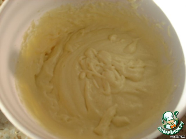 Тесто - яйца взбиваем с сахарным песком, добавляем муку и разрыхлитель.