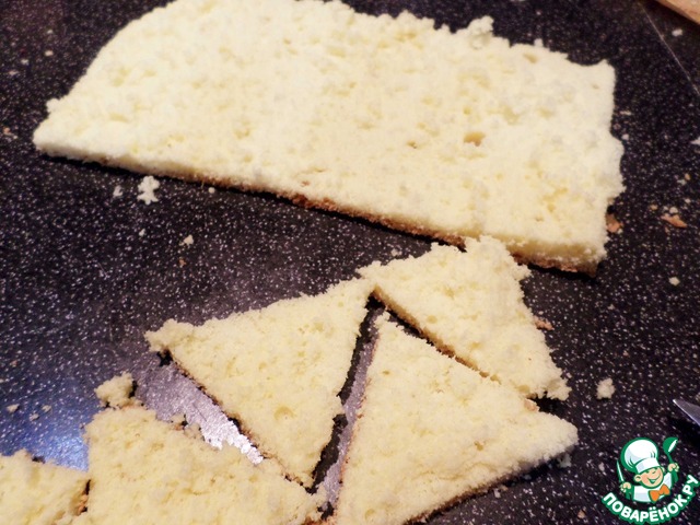 Первым делом замешиваем бисквитное тесто по любимому рецепту и печем тонкий - претонкий бисквит, как на рулет. Полностью остужаем.