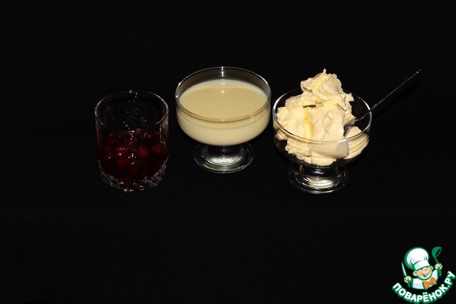 У некоторых хозяюшек есть уже настоянная вишенка. У меня она замороженная, ягодки не крупные, поэтому мне понадобилось их 44 ягодки (по 4 ягодки в каждый шарик). Я настаивала ягоды вместе с косточкой сутки в небольшом количестве виски (другого алкогольного напитка в доме не оказалось). Пока готовился бисквит, я вынула ягодки из виски и удалила из них косточки.