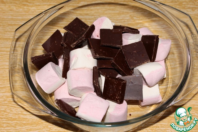 Но из-за праздничного настроения в преддверии Нового года оставшиеся 9 шариков я решила покрыть шоколадной мастикой, для которой нам понадобится 2 плитки темного шоколада (100г.), 90 гр. маршмеллоу и гр. 70-80 сахарной пудры.