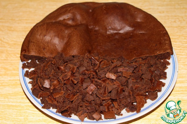 Дать немного остыть нашему готовому бисквитику, вынуть из формы и нарезать его на маленькие кубики.
