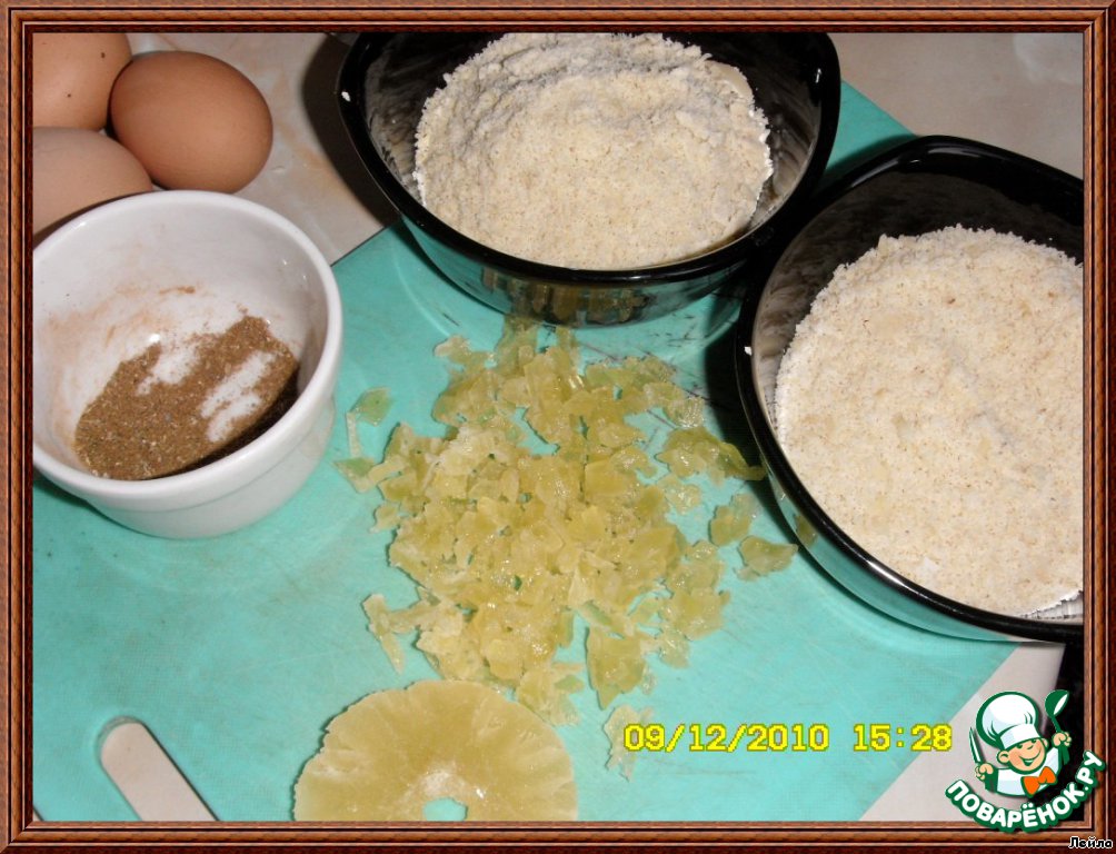 [quote]Вместо сушеных ананасов можно взять курагу + абрикосовый конфитюр или цукаты + апельсиновый конфитюр.[/quote]