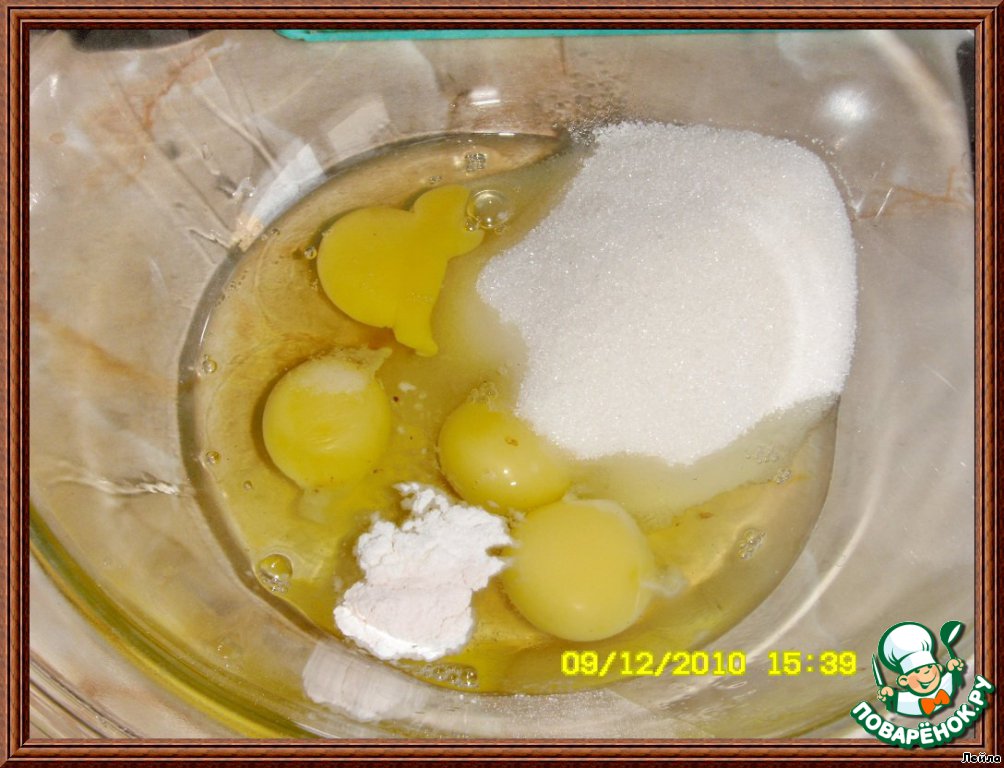 Взбить яйца с сахаром, ванильным сахаром и щепоткой соли.