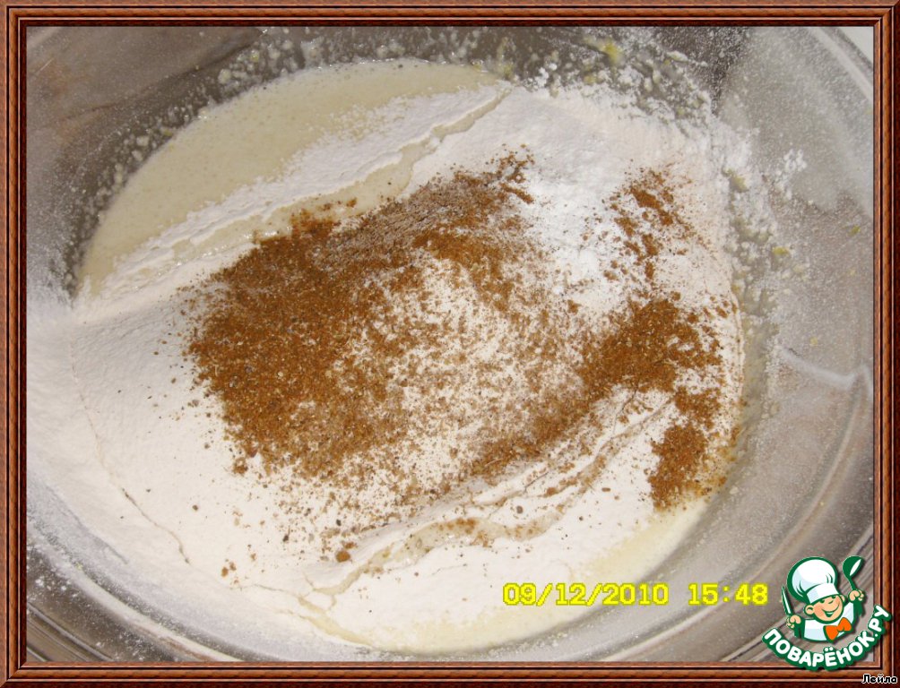 Смешать просеянную муку с разрыхлителем и специями и замесить тесто.