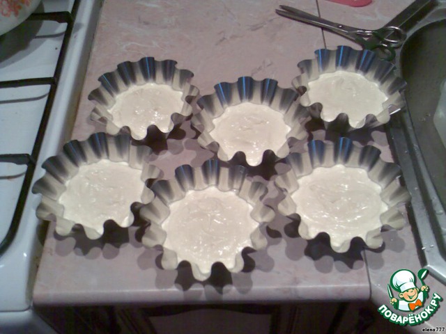 Формочки для тарталеток смазать растительным маслом, положив на дно промасленную бумагу, разложить тесто и выпекать в разогретой духовке при температуре 180-200 градусов.