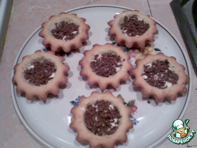 | Эти тарталетки приготовлены из бисквитного теста, с начинкой из мармелада и тeртого шоколада, с добавлением взбитых сливок и сгущeнного молока. Не судите, пожалуйста, меня строго - тарталетки сделала впервые! На конкурс "Королева фуршета" |