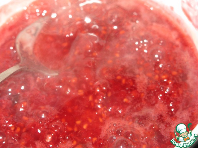 Ягоды (я брала замороженную с сахаром малину) с сахаром довести до кипения.