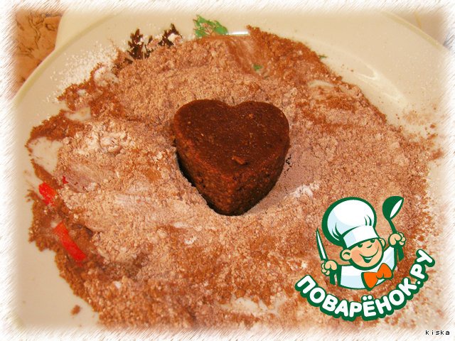 Вырезать из теста сердца и обсыпать их смесью сахарной пудры и какао. Можно вырезать или лепить любые фигурки, которые Вам подскажет фантазия!
