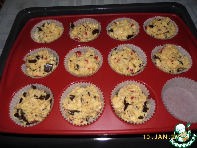 Раскладываем наше тесто по формочкам и отправляем в предварительно разогретую до 200 градусов духовку на 20 минут.