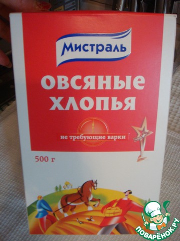 Овсяные хлопья я использовала фирмы "Мистраль". Они такие чистенькие и светленькие, и очень хорошо подходят для выпечки.