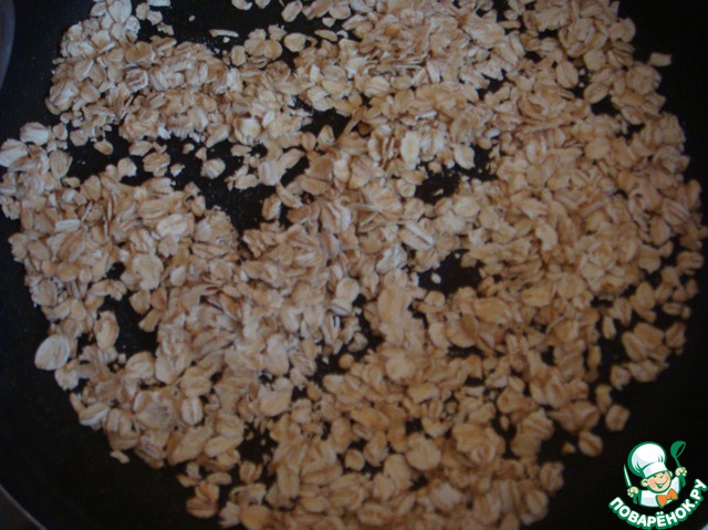 3/4 стакана овсяных хлопьев немного обжарить на сухой сковороде.