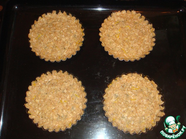 Формочки смазать растительным маслом. Тонким слоем распределить тесто руками по формочкам.