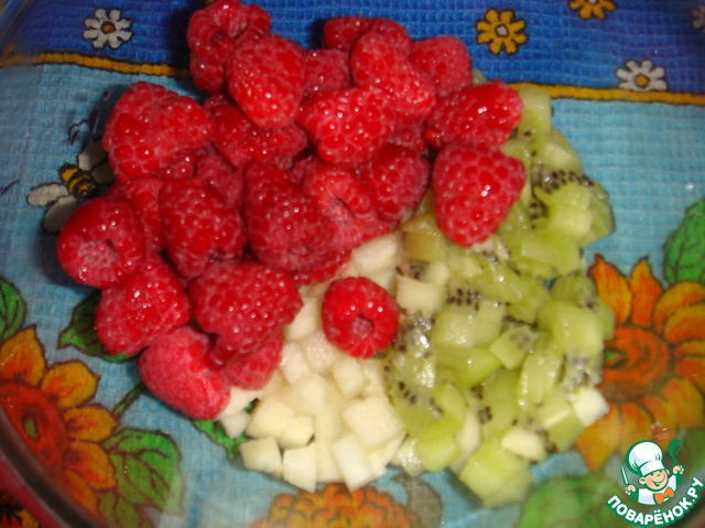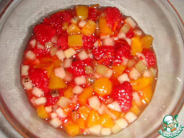 Фрукты и ягоды залить маринадом, перемешать и оставить до готовности корзиночек.