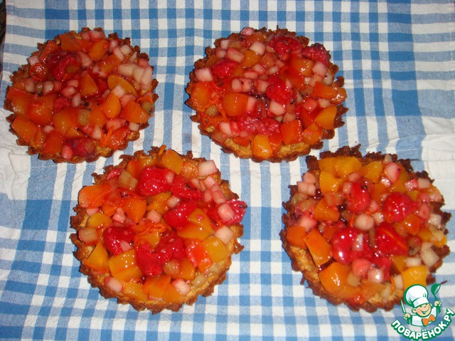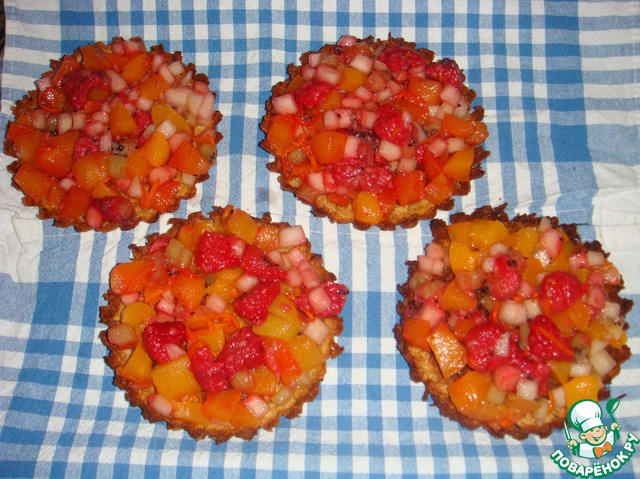 | Хрустящие корзиночки без муки и сахара, по вкусу напоминающие песочные, фрукты для которых можно использовать любые по вкусу и даже сухофрукты. |
