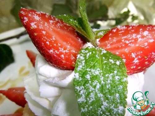 Украсить ягодой клубники, разрезанной пополам.