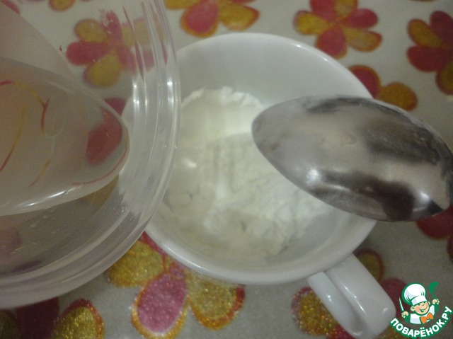 Взбиваем сливки +1 ч. л крахмала+ 1 ст. л сахарной пудры.