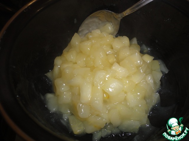 Загустить груши крахмалом, снять смесь с огня и дать ей остыть.