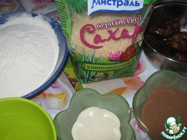 Приготовление пирожного делится на три этапа.1)Изготовление, выпечка, измельчение постного печенья с финиками.2)Приготовл ение манного шоколадного крема.3)Перемешивание крошки и крема.
