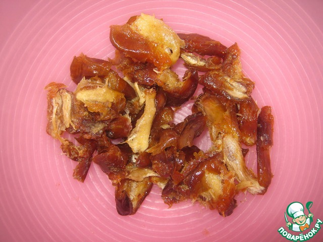 Измельчить финики в пюре блендером, можно немного подлить воды.