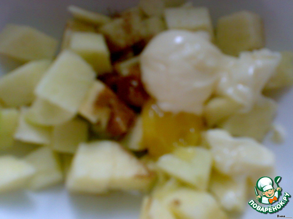 Тем временем очищаем и нарезаем яблоки кубиками, добавляем масло, мёд и корицу. Ставим в микроволновку на 2 минуты или тушим на маленьком огне до размягчения яблок.