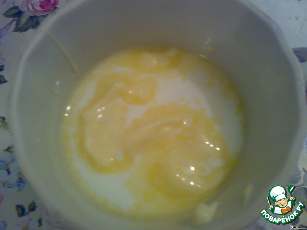 Подогреть молоко и смешать его с маслом и сгущeнкой.
