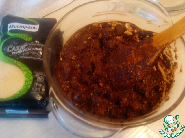 Теперь растапливаем масло, добавляем его к массе и также какао.