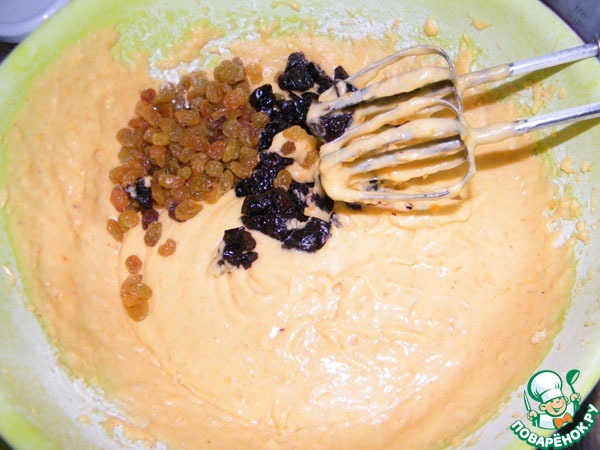 В тесто добавляем сухофрукты ( можно и без них, получится не хуже :) Раскладываем в формочки или в большую форму кому как нравится.