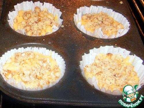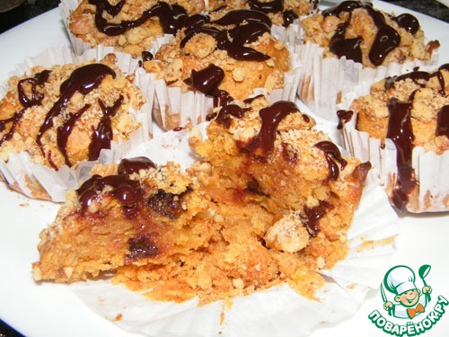С верху посыпаем орешками и отправляем в разогретую духовку на пол часа при 180*