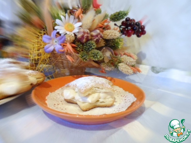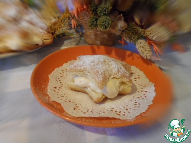 | Быстрый десерт из готового слоеного теста с нежным кремом, напоминающим крем-брюле. |
