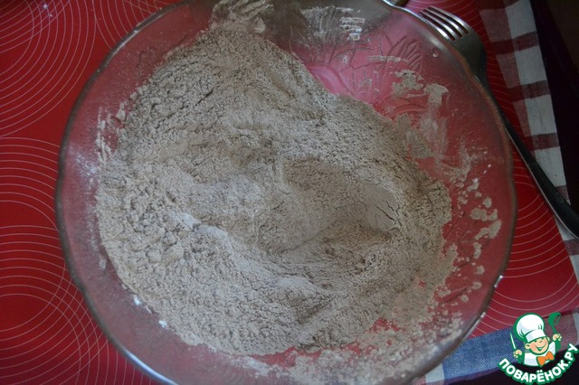 В одной миске смешиваем какао муку соду соль разрыхлитель.