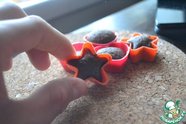 Разлить тесто по формам и выпекать 20 минут при 180 градусах в разогретой духовке. наполнять форму на половину. у меня формы маленькие и поэтому испеклось очень быстро.