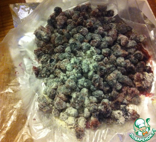 Присыпать чернику 1 ст. л. муки, остальную муку мы добавим в крем.