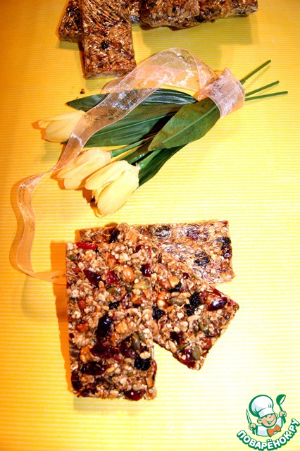 | Energy bars. Необыкновенно вкусные, с ярко выраженным медово-ореховым ароматом, поджаренными овсяными хлопьями и кислинкой клюквы батончики, идеальный перекус и отличная замена покупным барам, которые стоят не дешево! Они могут быть приготовлены практически из любой смеси орехов и сухофруктов, которые вы предпочитаете и любите, а главное - все очень просто и доступно! |